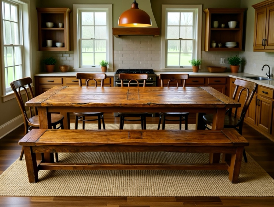 Stunning solid oak refectory kitchen table with matching bench. Matched with 5 beautiful vintage bentwood chairs, all in very good, solid condition. This is a really good quality, complete dining