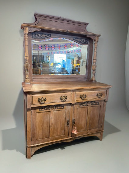 Stripped walnut, mirrored back sideboard. Two drawers with a double cupboard below, with working lock and key. The mirrored section is removable and can be used separately if required? The entire piece has been finished in white wax, for a more contemporary, modern feel.