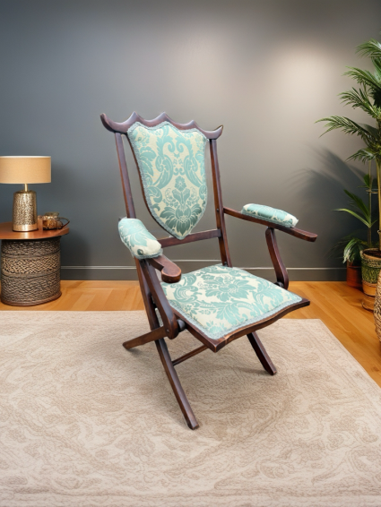 Folding campaign chair, good upholstery and frame.